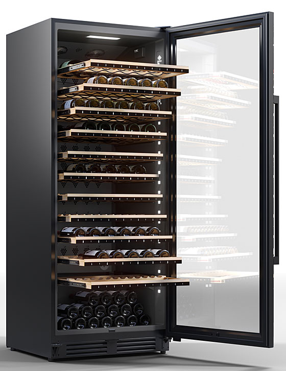 Verder heeft deze fraaie top wijnbewaarkast, ontworpen en geproduceerd in Frankrijk, een totale flescapaciteit van 149 flessen. De temperatuur is in te stellen tussen 5 – 20 graden in enkele of een Multi temperatuur modus. Dit kan vrijstaand worden geplaatst, maar is ook, dankzij de frontventilatie, geschikt om te worden ingebouwd.